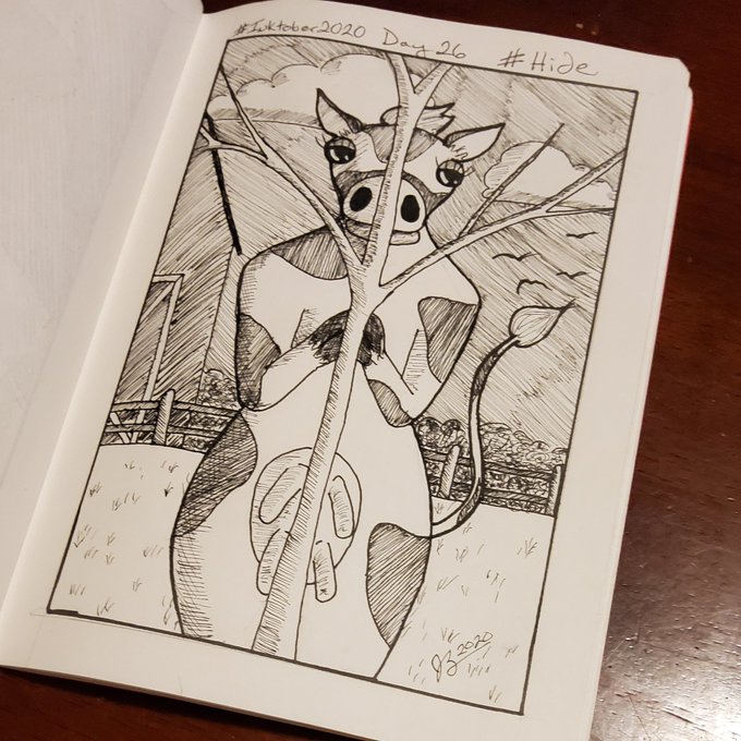It's #day26 of #inktober and the prompt is #hide Sorry you can't see the subject of today's #drawing but sometimes you have to hide if you want to save your hide. #inktober2020 #inktober2020hide #pen #ink #penandink #cow #cattle #farm #dairy