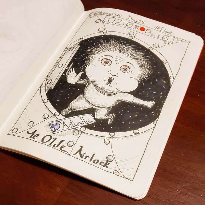 The prompt for #day28 of #inktober is #float and that made me think of one of my favorite writers, @stonekettle , who suffers fools not at all and must have thousands of trolls floating outside his Twitter airlock. #inktober2020 #inktober2020float #penandink #art #pen #ink