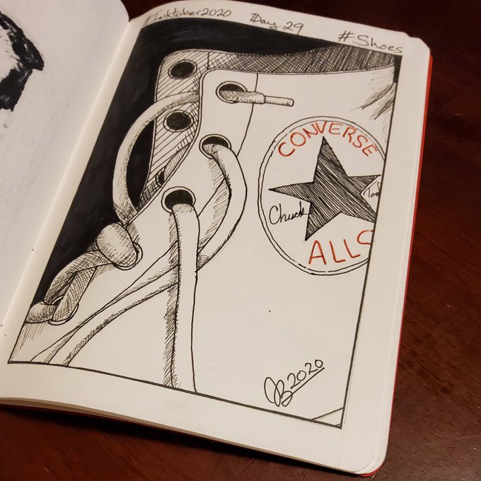 The prompt for #day29 of #inktober is #shoes and I decided to keep it simple #inktober2020 #inktober2020shoes #art #pen #ink #penandink #converse #chucks #chucktaylors