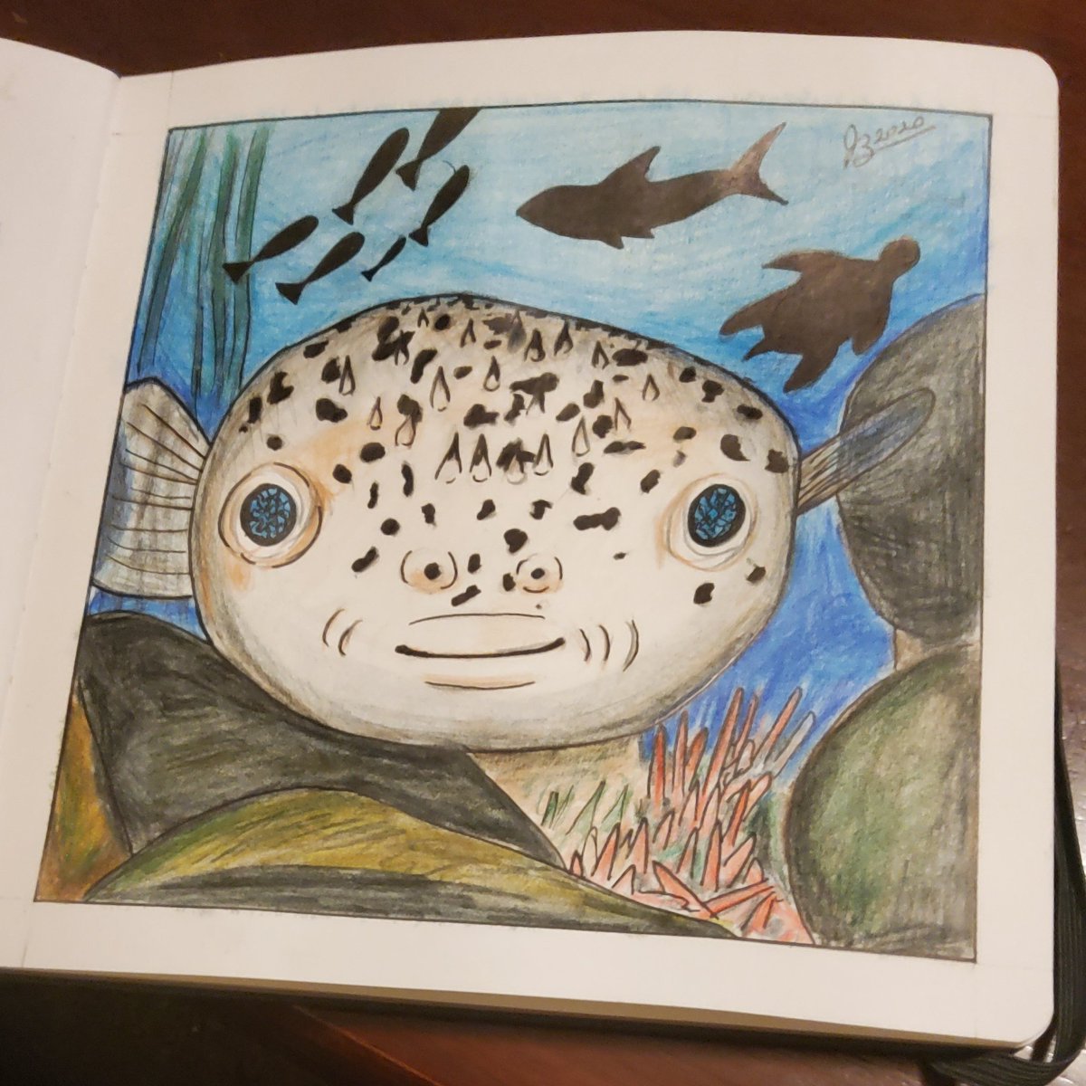 So apparently it takes about a month and a half to recover from #inktober This little #pufferfish is the first piece since the end of #inktober2020 #art #fish #coloredpencil #ink #alcohol #puffer #draw #drawing #showmeyourillo
