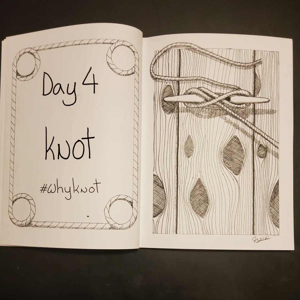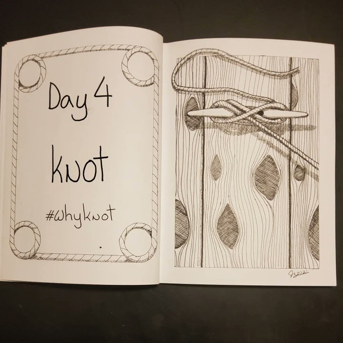 The prompt for #inktober2021 #day4 is #knot Someone made a dicey choice and built this pier out of knotty pine but the knot seems to be holding and so far the boats velocity is 0 knots per hour. #inktober #inktoberday4 #inktober2021knot #ink #penandink #art