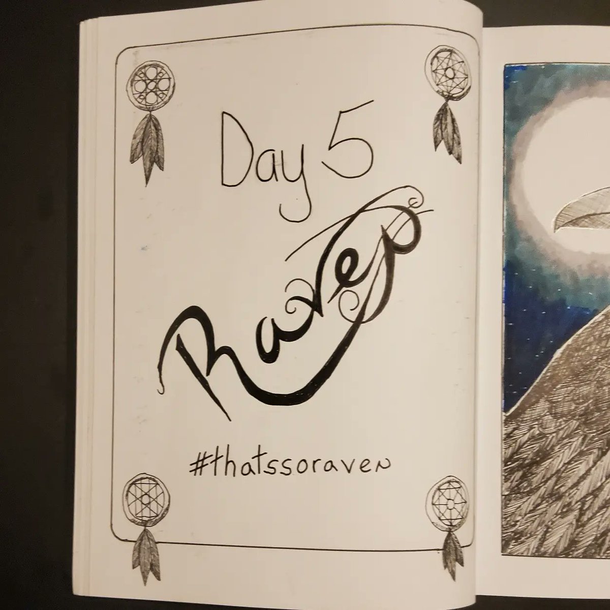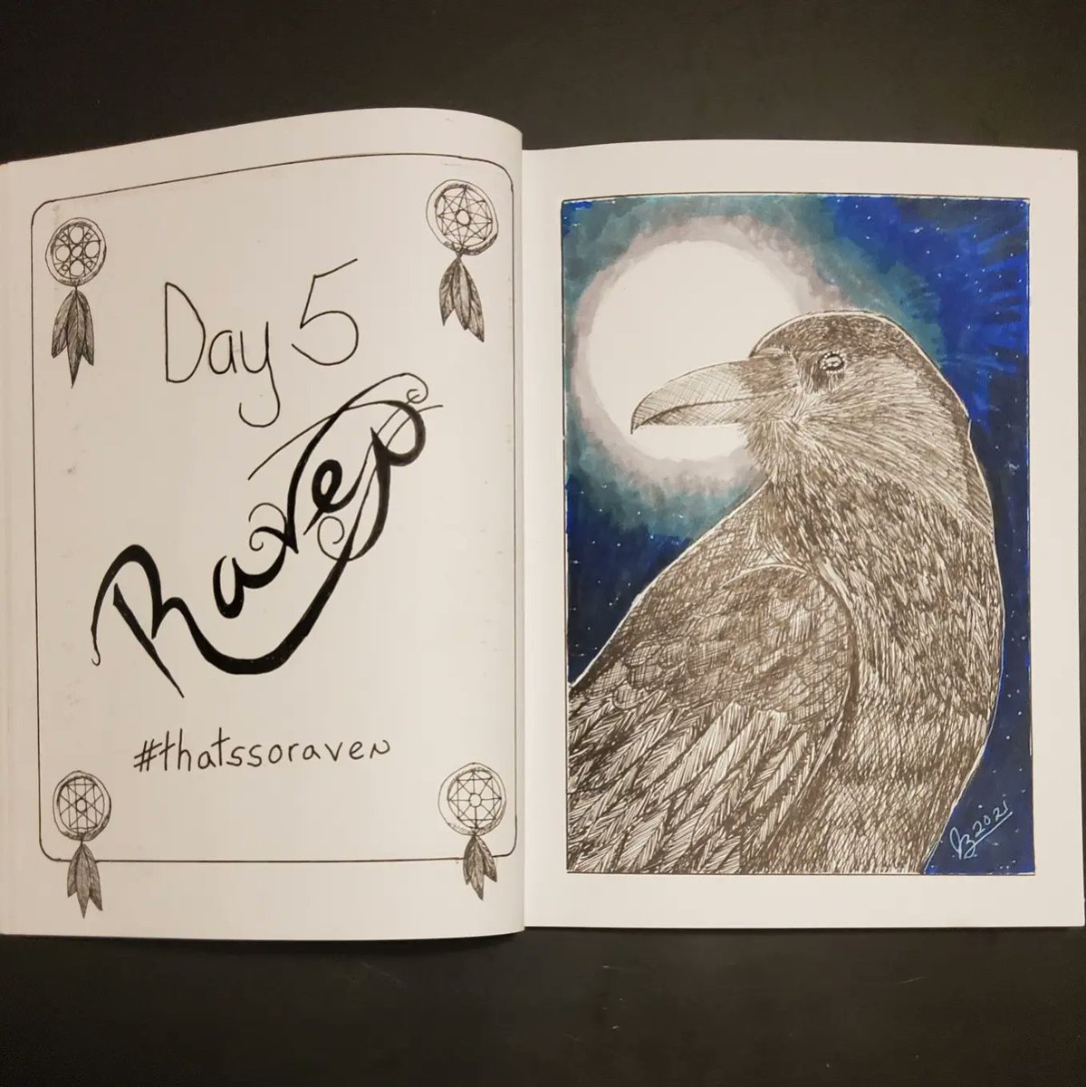 The prompt for #inktober #day5 is #raven. I added some #copicmarkers for some color in the background this time. #inktober2021 #inktoberday5 #inktober2021raven #pen #ink #penandink #art #drawing