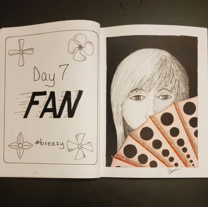 It's #inktober2021 and the #day7 prompt is #fan I sometimes like adding just one color, usually red, to these images. #inktober #inktober2021day7 #inktober2021fan #penandink #pen #ink #draw #drawing #art