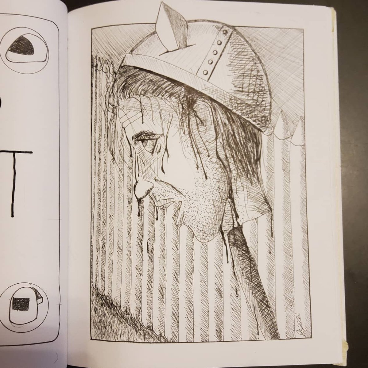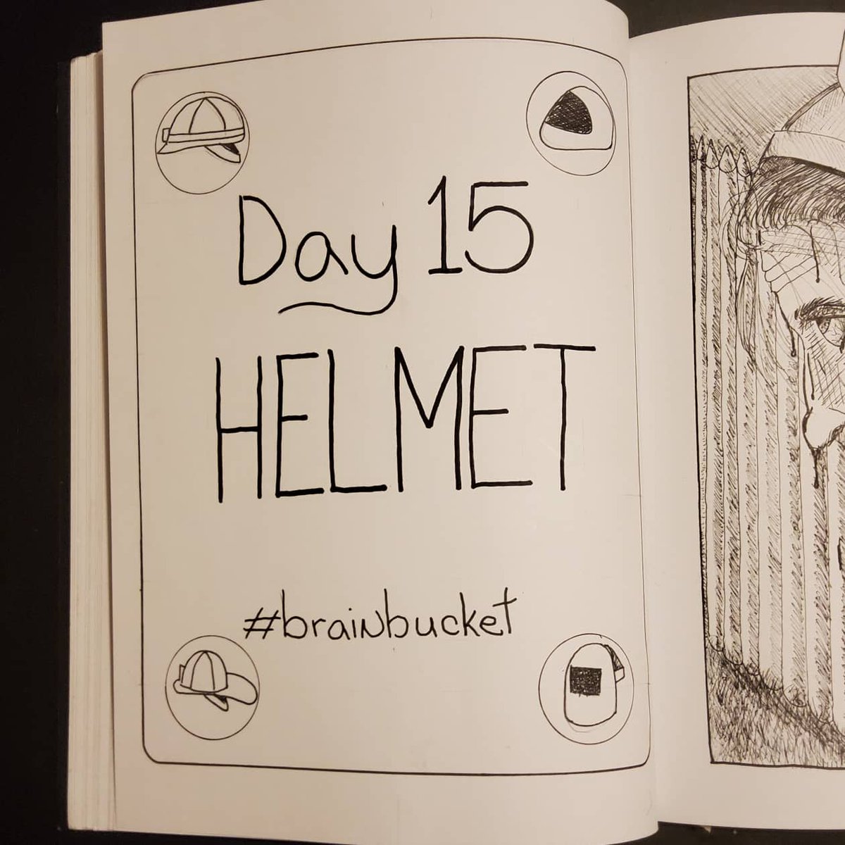 The prompt for #inktober #day15 is #helmet. This one doesn't seem to have helped much. #inktober2021 #inktober2021day15 #inktober2021helmet #art #pen #ink #penandink