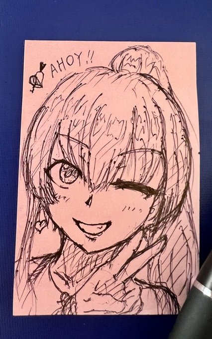 ボールペン付箋落書き第2弾!マリン船長! #マリンのお宝