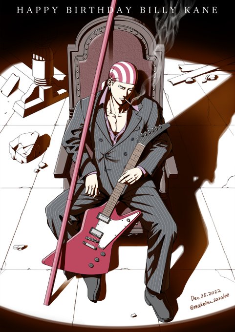 もう何回目か忘れたクリスマス恒例ビリー・カーン誕生日絵が今年もできました 今年はなんといっても新衣装ストライプダブルスーツのチンピラ着こなし仕上げでKOF15参戦という事でスーツ姿で描きました 来年のシーズン2では強化が約束された?お兄ちゃんの更なる活躍に期待 #ビリー・カーン生誕祭