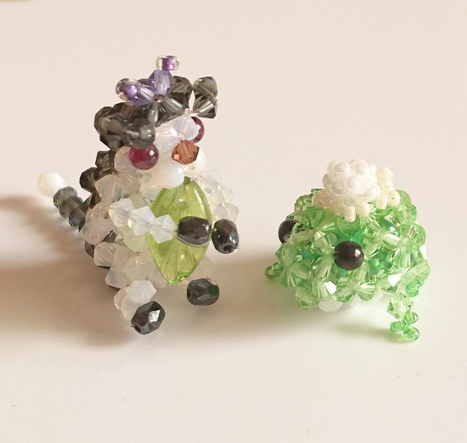 そそこそこの🌙かえると、猫まおまお作ったよ✨ 数年ぶりにビーズなんぞやったら、めっちゃ時間かかった(;´д`) #薬屋FA
