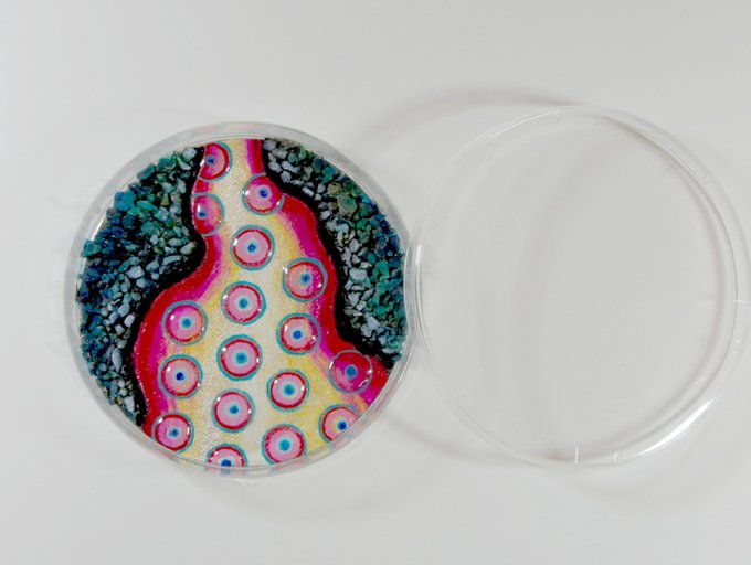 AnyKobeWithArts2021超公募展受賞者展、展示作品 「霊山参詣曼荼羅 in Plastic age」 アクリル絵具、海岸のプラスチック片、カンバス 10×10cm 2022 #anykobe #anykobewitharts2022 #contemporaryar現代アート #marineplastic #海洋プラスチック