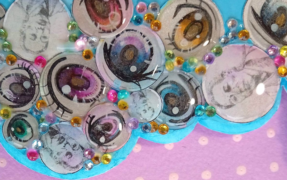AnyKobeWithArts2021超公募展受賞者展、展示作品 「水の方舟」 アクリル絵具、海岸のプラスチック片、砂、ホログラムペーパー、ペン、レジン、紙、綿布、木製パネル 27.3×22cm (F3) 2022 #anykobe #anykobewitharts2022 #contemporaryart #現代アート #marineplastic #海洋プラスチック