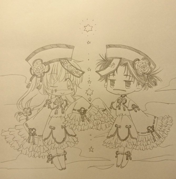 #お兄ちゃんワンドロ お題『キョンシー』 大好きな着せ替えアプリのキョンシーちゃん衣装がハチャメチャに可愛いので、お兄ちゃんと真人くんに着てもらいました(´˘`*)