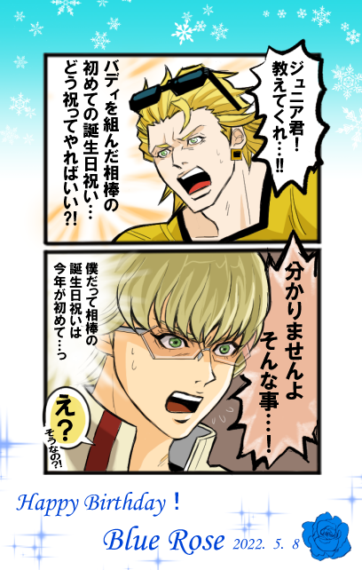 TLに溢れる素敵なお祝いツイートに胸がいっぱいでした! 私も何かお祝いしたくてギリギリ焦って雑絵ですが… おめでとう!ライアン!(私の、以前のブルロちゃん祝い絵に続いてます) #ライアン・ゴールドスミス生誕祭2022 #ゴールデンライアン生誕祭2022 相棒と元相棒のお祝いは、またひとしお!