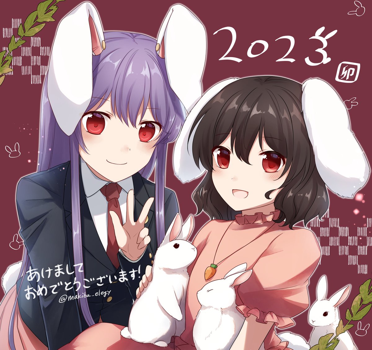 新年あけましておめでとうございます🎍 うさぎ年なので優曇華とてゐ! 今年もよろしくお願いします(´ω`*)