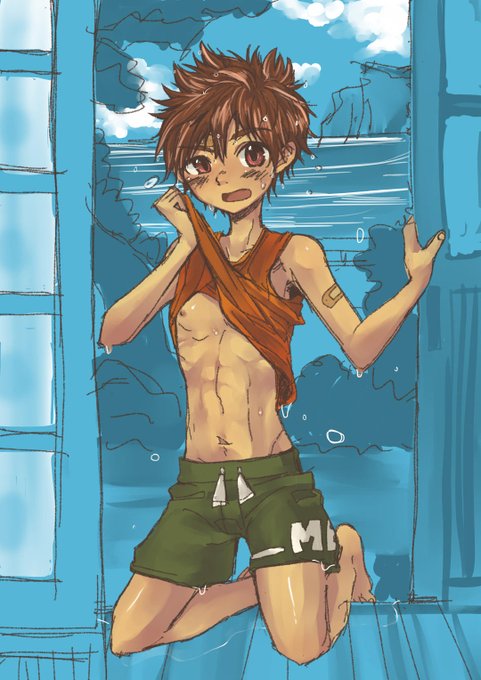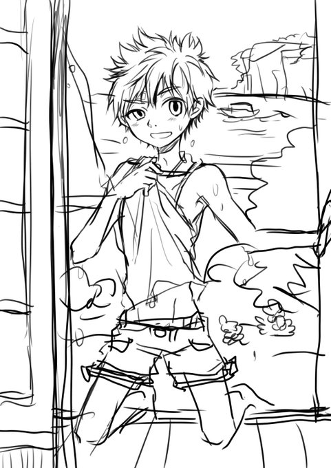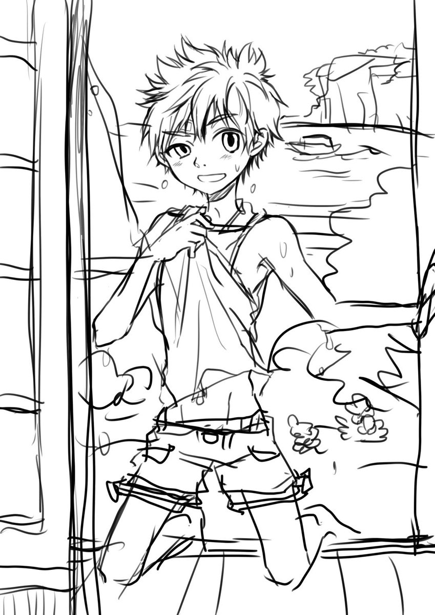 #Sketchドロー #作業中 進捗。夕立に降られるは夏休みあるある。 ……えっ夏休みもう終わったんですか?? せっかく描いた上半身さよなら。 sketch.pixiv.net/items/50379597…