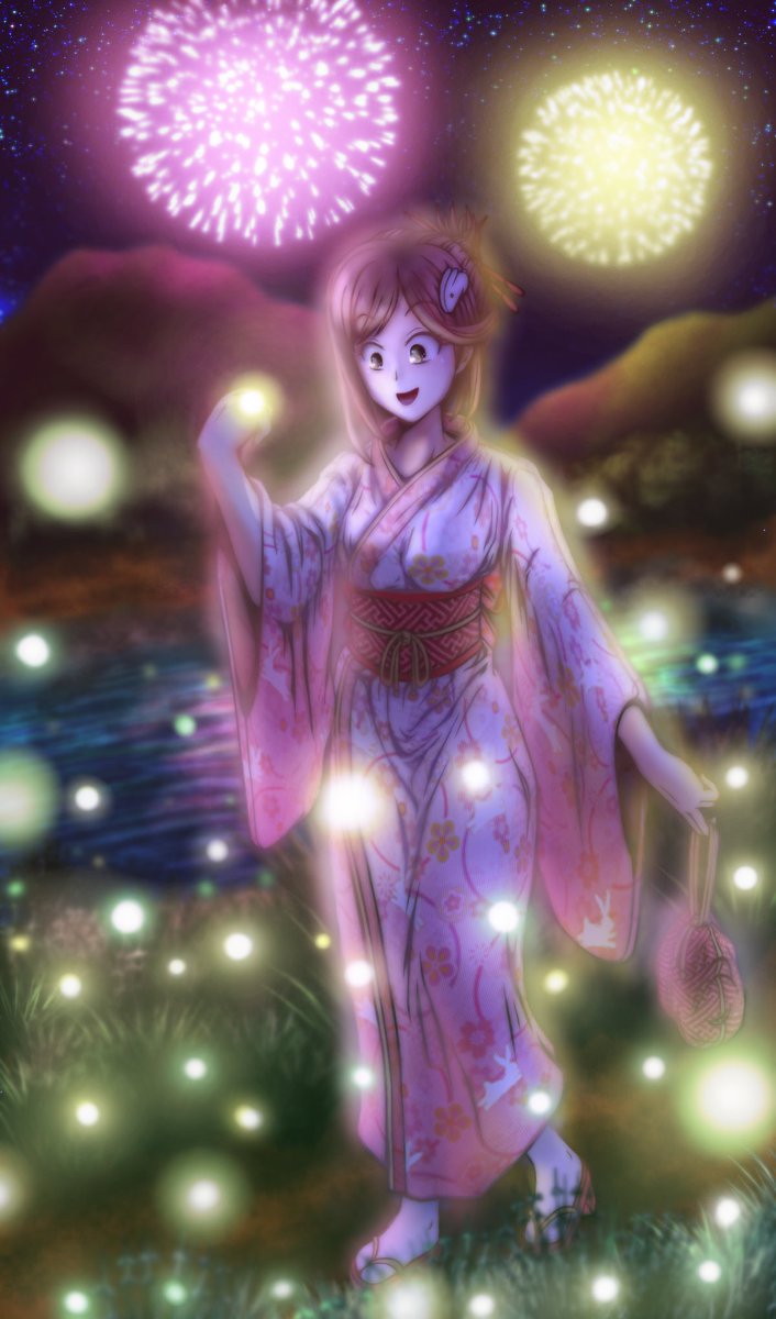 #アリスギアお絵かき #あんなチャン #あんなアート 花火の光と蛍の光に包まれる 夏のあんなちゃんです🎆 今回も背景自作で頑張った! 浴衣のデザインは勿論ウサギ🐰 光と影の強弱が難しくて かなり時間かかりましたが、 まだまだ勉強する事が多いなと 改めて感じました。 線画等はリプ欄へ⤵️