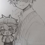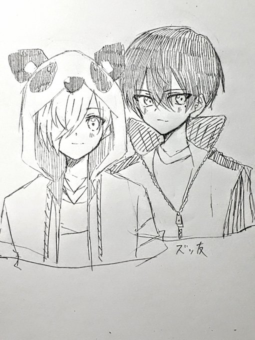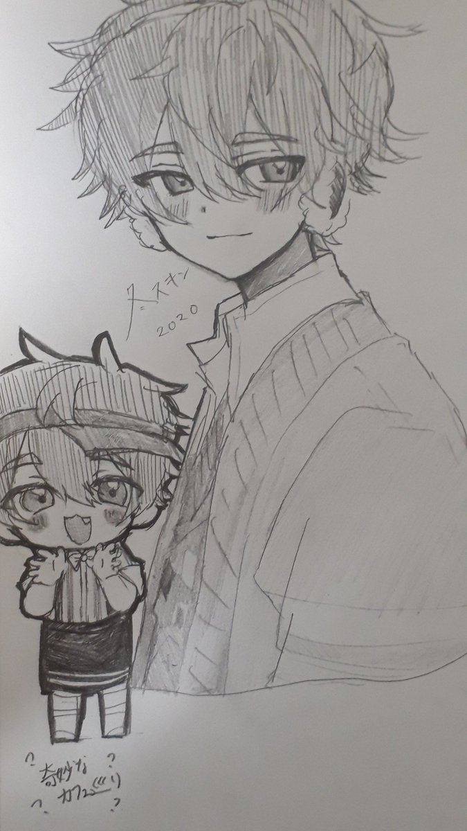 ♨描こうとしたら顔を通常にしてしまったうぃずけ💙💛 #しろっぽ