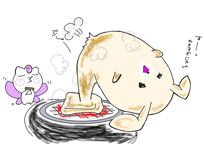 ぷく〜。 おもち焼きました。 ちょうろうもち!! #イラスト #ゆるいイラスト #LINEスタンプ #お餅