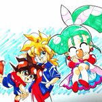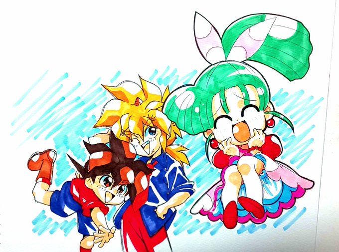 220 735 ワタルと虎王と海火子がわちゃわちゃ楽しそうにしている絵でございます…。あちらのお方からです✨ #魔神英雄伝ワタル #芦田豊雄 22/07/23 20:16