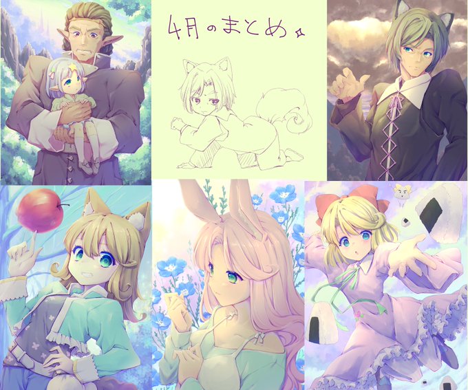 いろんな耳の4月 しかしおじさんのデフォルメはむずい‥ #今月描いた絵を晒そう
