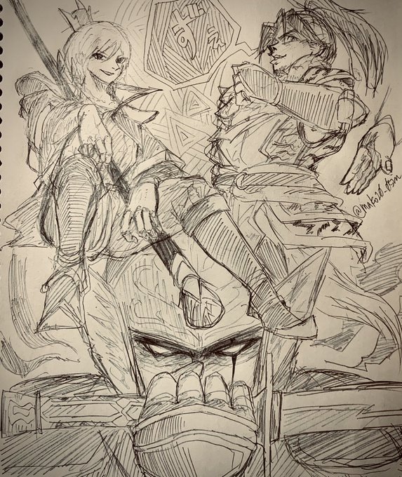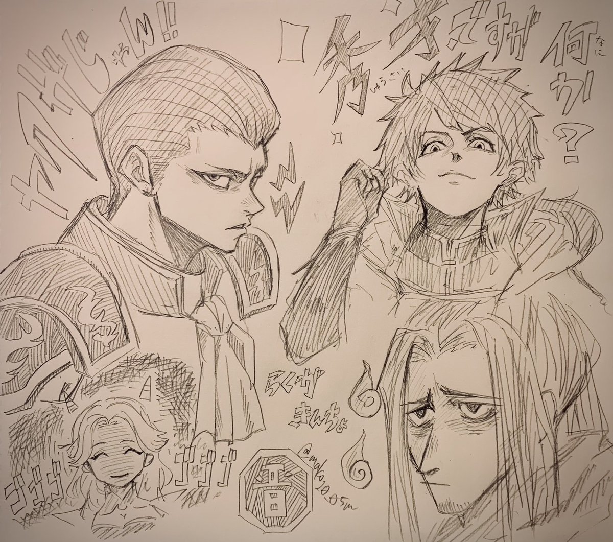 2 26 甘寧と凌統 途中で身体の描き方分かんなくなったけど「これが今のわたしの実力だ」と開き直って落書きしました。逆さまになってる時の髪の毛の描き方わかりません😭ちゃんと資料見ようぜ 21/06/19 00:14