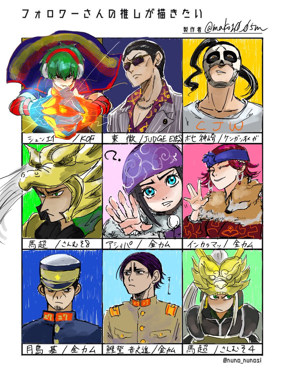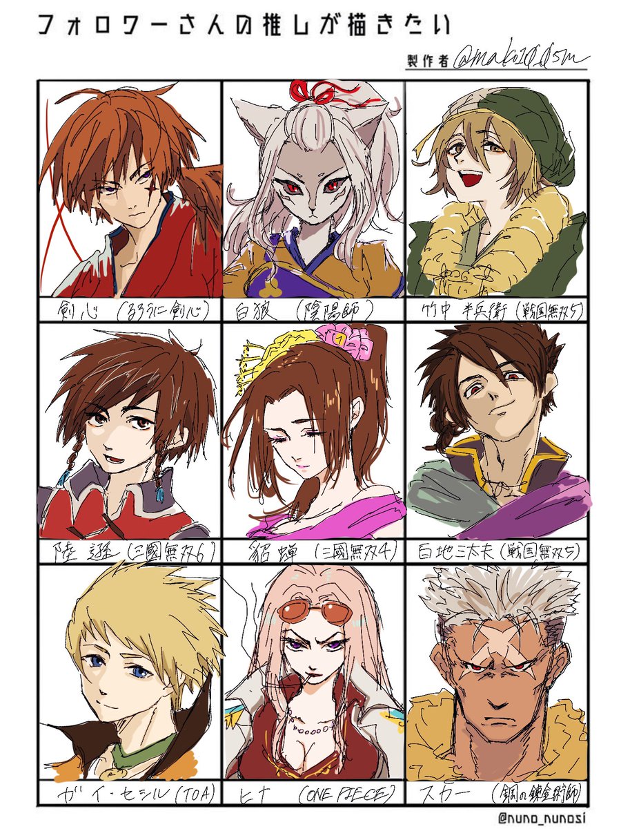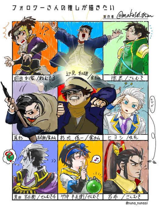 #フォロワーさんの推しが描きたい あまり描いたことないキャラもいて楽しかったです!下段3枠は余り枠なので自分の推しを描きました!ありがとうございました!!