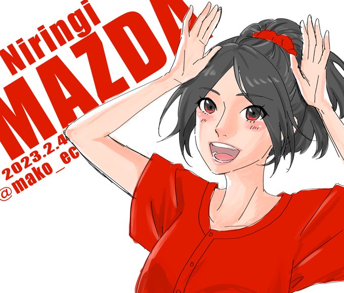 元気な女の子描きたくてマツダちゃん描いた。 手を頭にやってるのはうさぎ年だからだったり…。 #にりんぎ