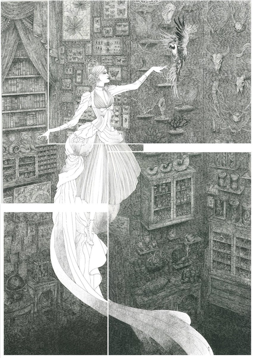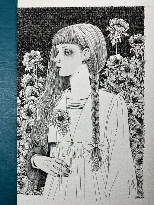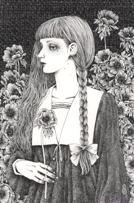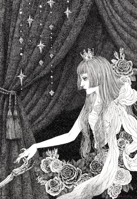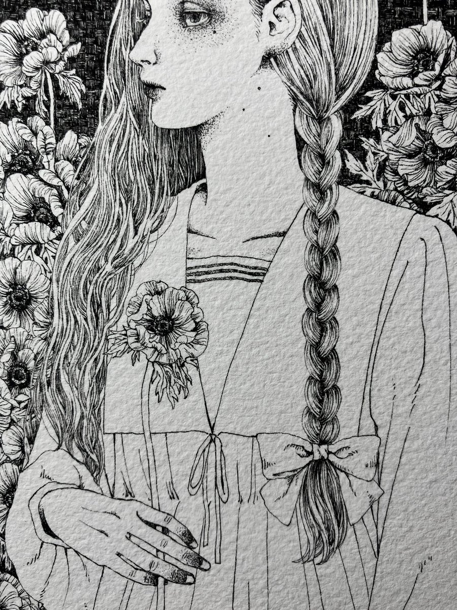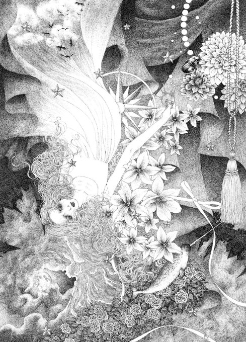 よがあける / the dark is rising 255x350mm / pen, sumi,paper 絵を描く時間が取れなかった時期にちょっとづつ1年以上かけて描きました。「今日は花だけ」「今日は星だけ」みたいに進めて正気を保っていました。 #自分の代表作だと思う絵を一枚だけ選んでみよう #ペン画 #丸ペン