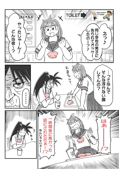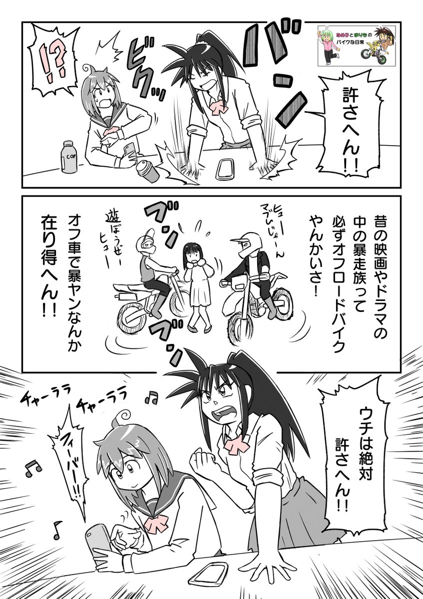 あぁ~w なめちゃん怖がられた様子( ´∀` ) 高校生ん時、知り合いの中型バイク女子ってのも驚いた思い出あるけど、もし当時エクストリームなんかやってたら僕も逃げだしますわww 今朝「BAN」の数が増えたので暫く様子見お休みします~ #漫画が読めるハッシュタグ