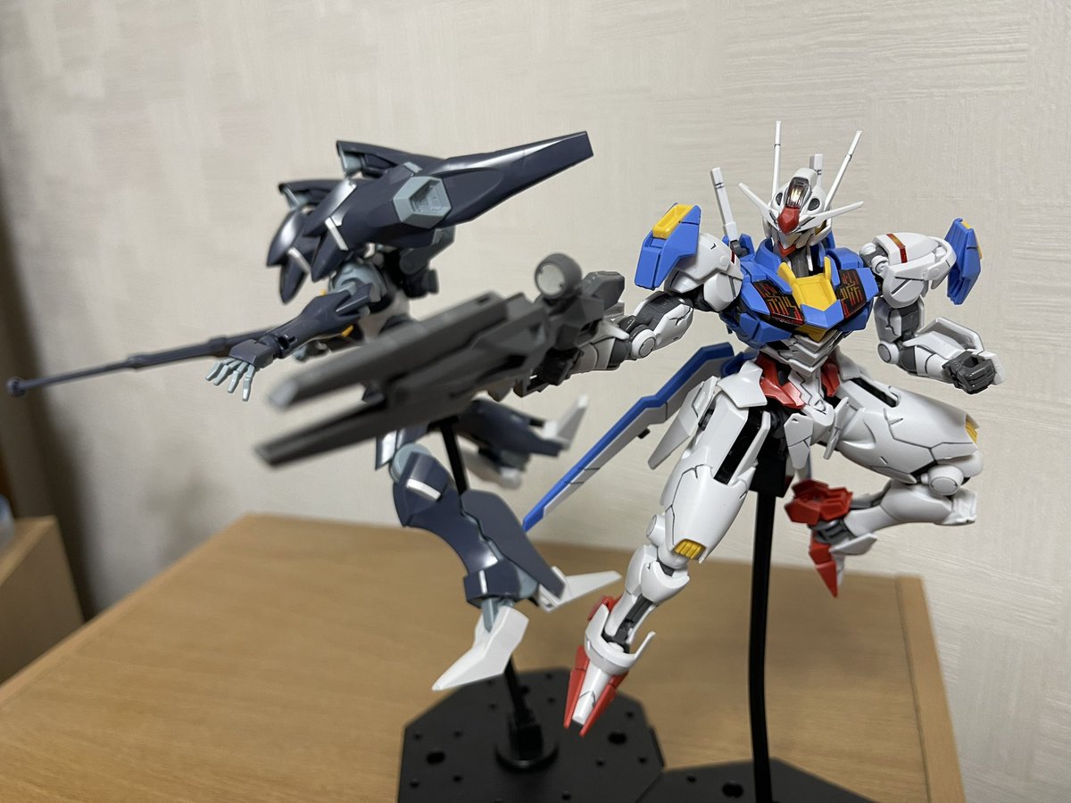 これがやりたかった!!これが本編でも見たかった! 背中合わせで一緒に闘うエランさん(4号くん)とスレッタ! 「エランさん、うしろは任せました!」 「任せて、そっちは任せたよスレッタ・マーキュリー」 #ガンプラの画像貼るとRTされると聞いて #水星の魔女