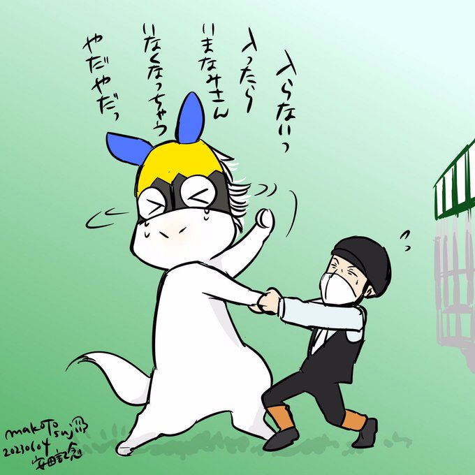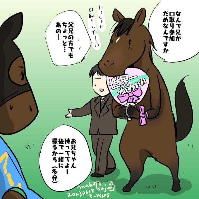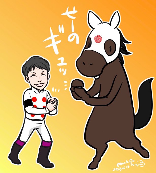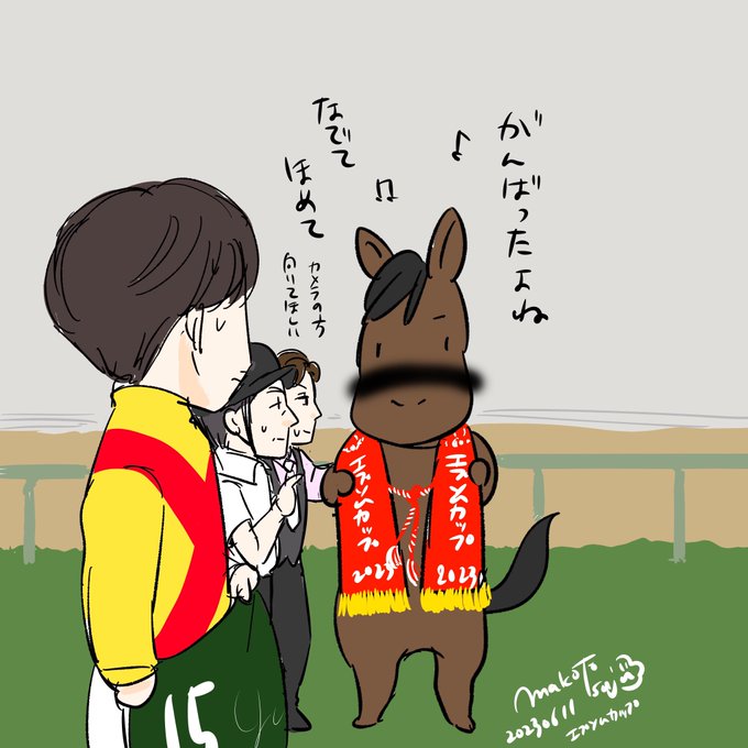 ナイスファイトに感動して話しかけに行くイクイノックス 池添さんとの時間なにしてくれんだ女子のスルーセブンシーズ (私が描く池添女子のみなさんはなかなかメリハリがひどい) #スルーセブンシーズ #イクイノックス #宝塚記念