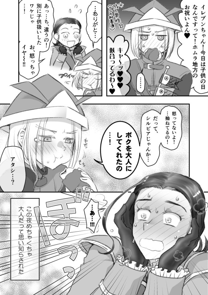 めちゃくちゃ遅刻してすいません、主シルで「こどもの日」です🐟❤️🎪 ホムラ基準だとまだまだ子供〜〜〜拗ねブン〜〜〜!!!(しかしやる事はやる) 2.5ドロくらいかな… #シルビア受け版ワンドロ・ワンライ