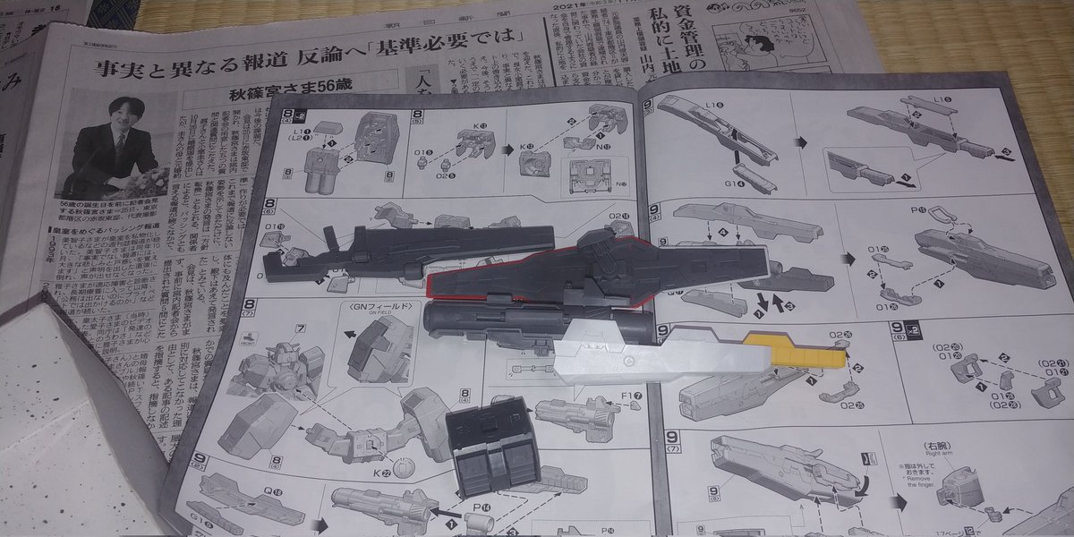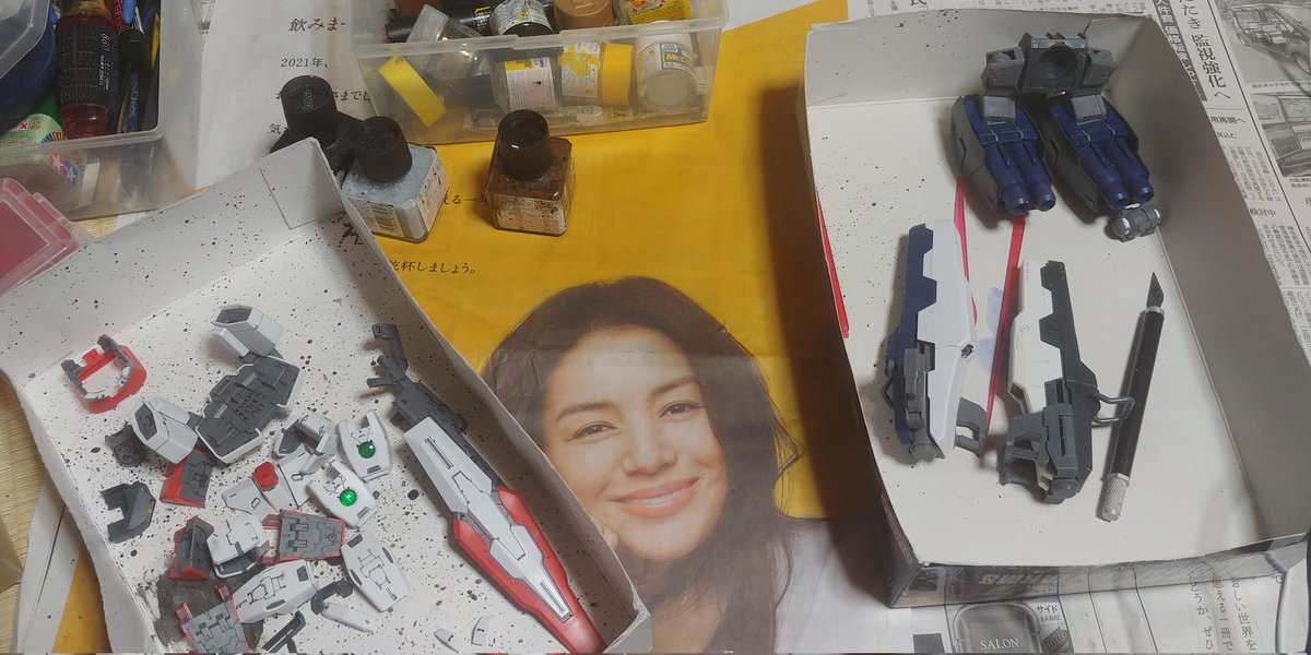 長澤まさみさんと見上愛さんに守護られながら MGガンダムヴァーチェの続きをしとうございます。 今年最後のプラモ製作になります。 接着剤、塗料を使わないと死ぬという病気を煩ってるためw 自宅で作ったら両親に怒られるので父上の弟の家で作っています😭 #ガンプラの画像貼るとRTされると聞いて