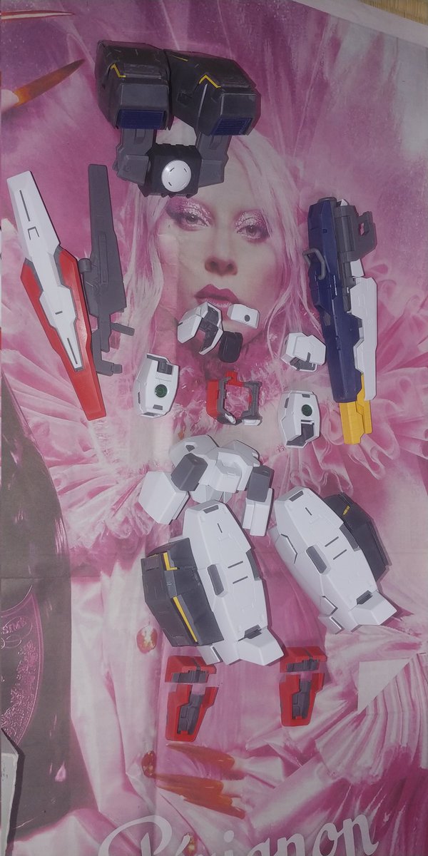 レディガガさんに守護られながら MGガンダムヴァーチェを作ってました。 (おや、いつもと違うぞw ) 胸と頭を除くヴァーチェの外装を組終わりました。 これで明日からナドレにはきれます。 #ガンプラの画像を貼るとRTされると聞いて #ガンプラはどんな自由な発想で作ってもいいんだ