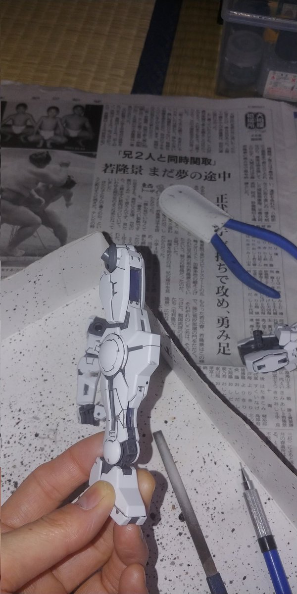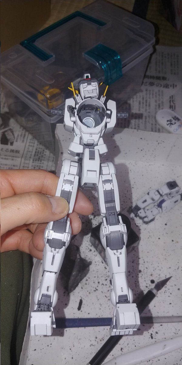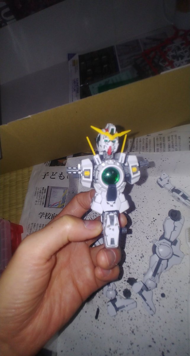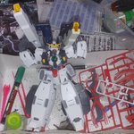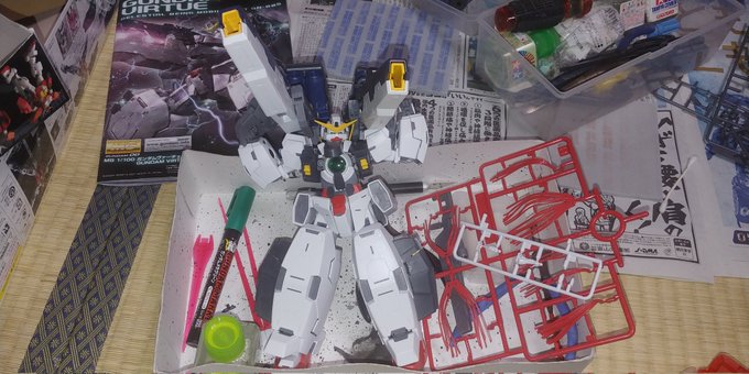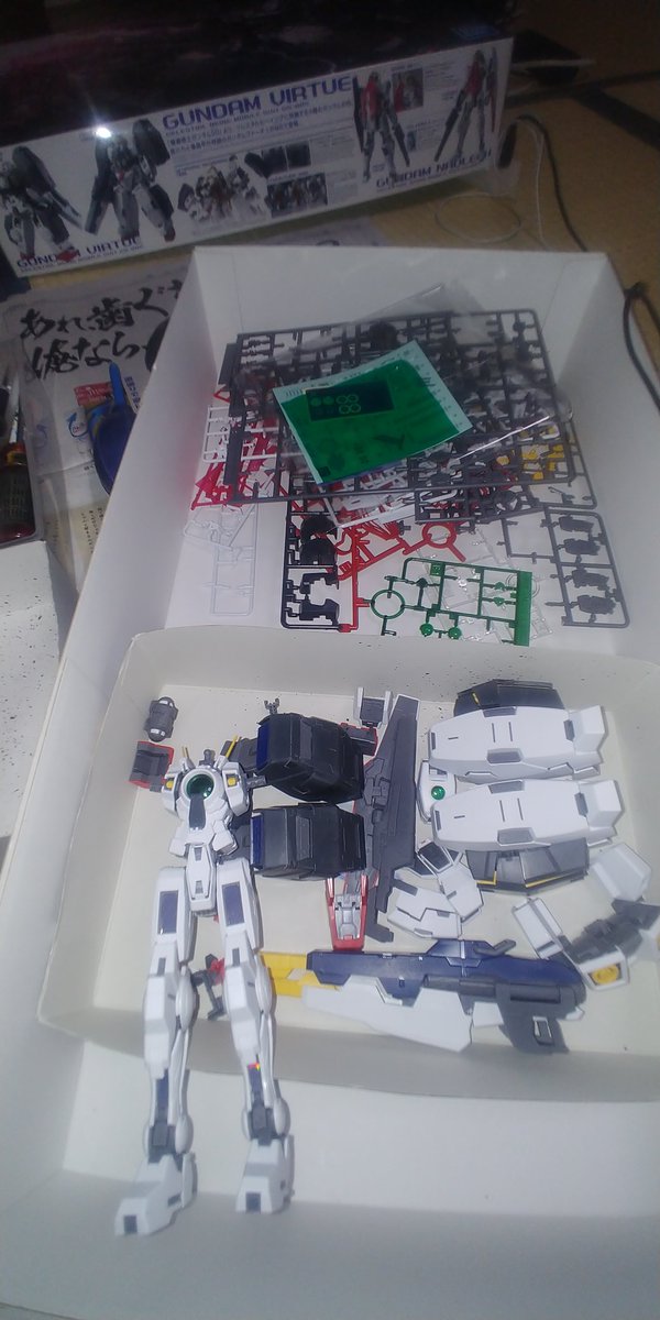 梅沢富美男さんに守護られながら MGガンダムヴァーチェの続きをしとうございます。 凄く寒くてまだ指の感覚かありません😱 (手袋持ってるんだから使えよ😣) #ガンプラ #ガンプラの画像を貼るとRTされると聞いて
