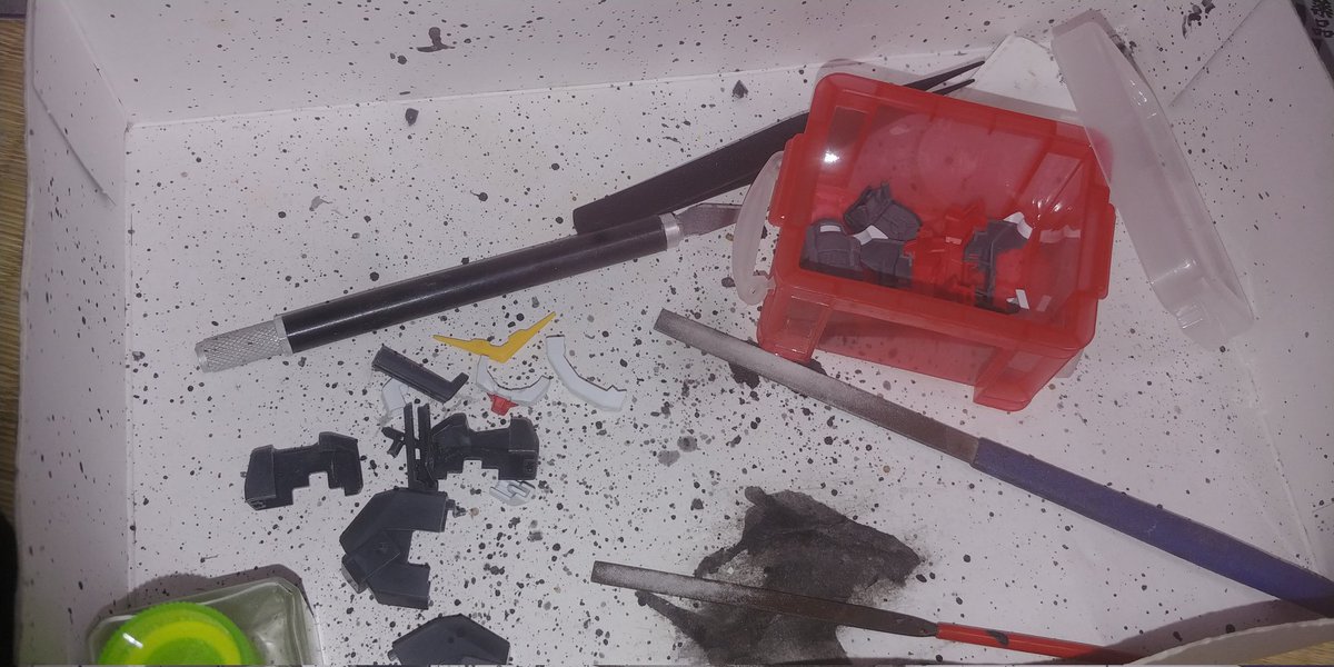「目標を殲滅する」(Cv.神谷浩史) 殲滅どころかヤスリがつまるつまる😰 超音波洗浄機デカイノガホシクナル💸 納得いくまでヤスったので これで家にやっと帰えれますw #ガンプラの画像を貼るとRTされると聞いて #ガンダム00
