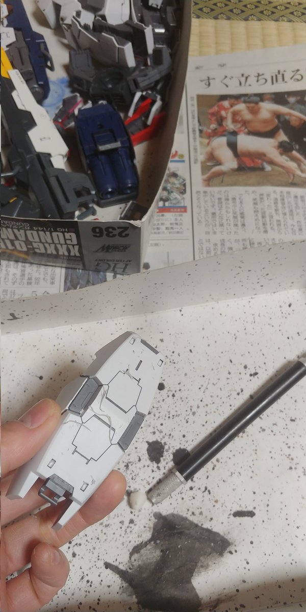 「計画を歪めてしまった」(Cv.神谷浩史) バズーカの続きをするはすが 何故かバックパックを切り出しす。 ずいぶんイヤらしい場所にゲートがあるなぁ~。(少しえぐった) ゲート処理に30分かかりました😭www では家に帰ります。 #ガンプラ #ガンプラの画像を貼るとRTされると聞いて #ガンダム00