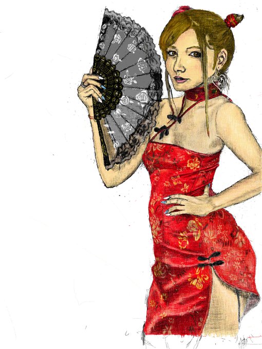 #上原花恋 #チャイナドレス #iPad #ペンタブ #鉛筆画 #色鉛筆