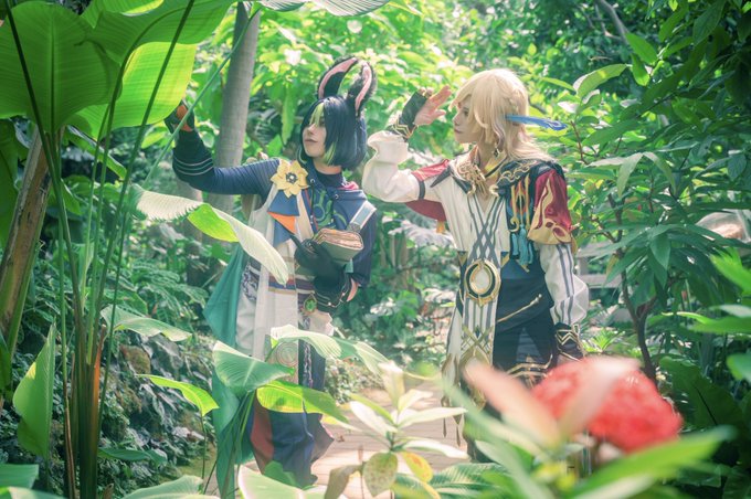 コスプレ/Genshinlmpact 原神▶▷カヴェナリ ▷ティナリーTighnariー ▷カーヴェーKavehー 「おすすめの観葉植物」 🍄…半沢川@makura5552 🏛…あおばさん@tonton_ichaicha photo:まどかさん @kokonoomadoka