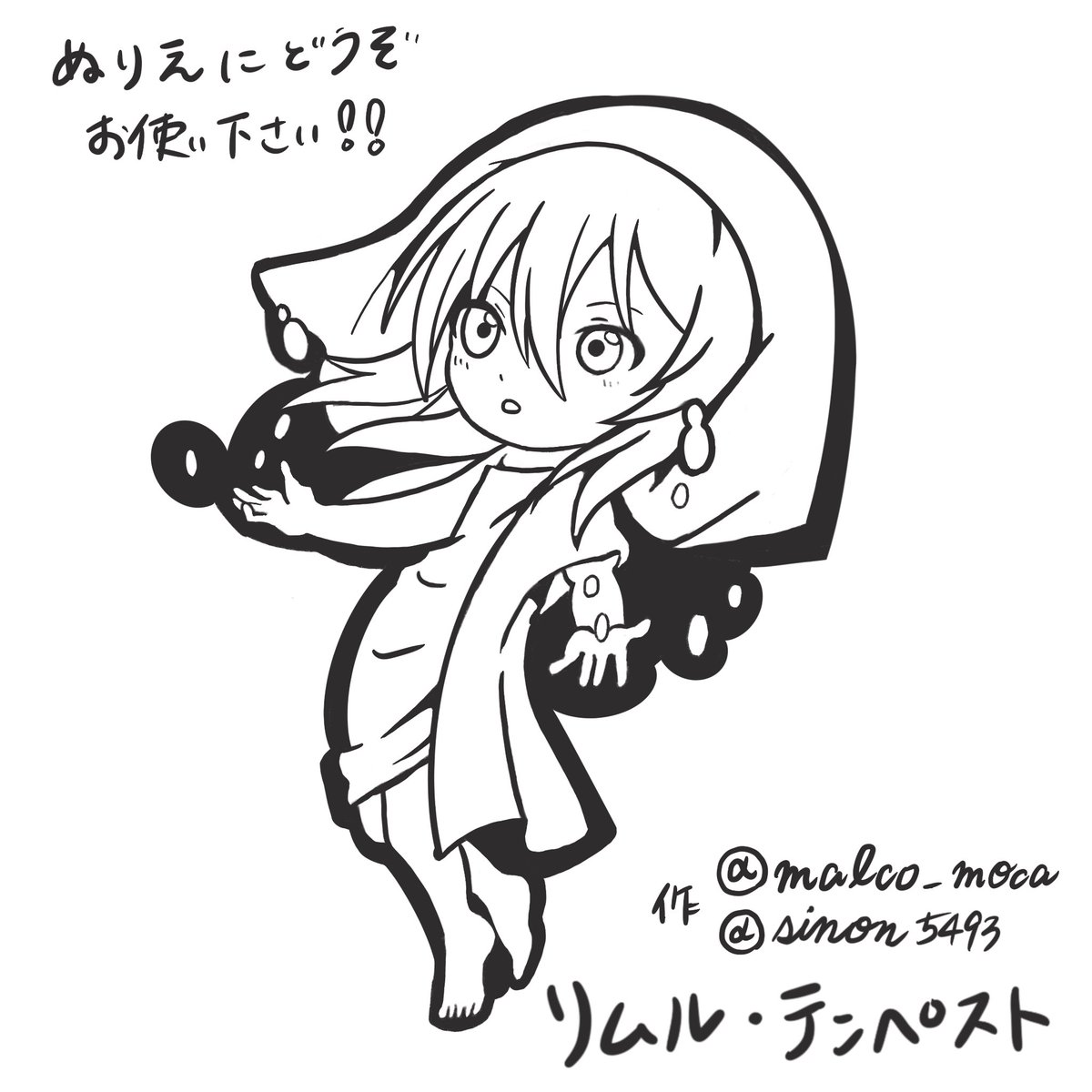 はっちゃんのツイートにもあった通り、 転スラのリムル=テンペスト模写してみたよ〜🙌 良かったら塗り絵にどうぞダウンロードしてください😇 #転スラ #リムルテンペスト #描いてみた #塗り絵用 #デジタルイラスト #お絵描きさんと繋がりたい #転スラ好きな人と繋がりたい @arisulove0512