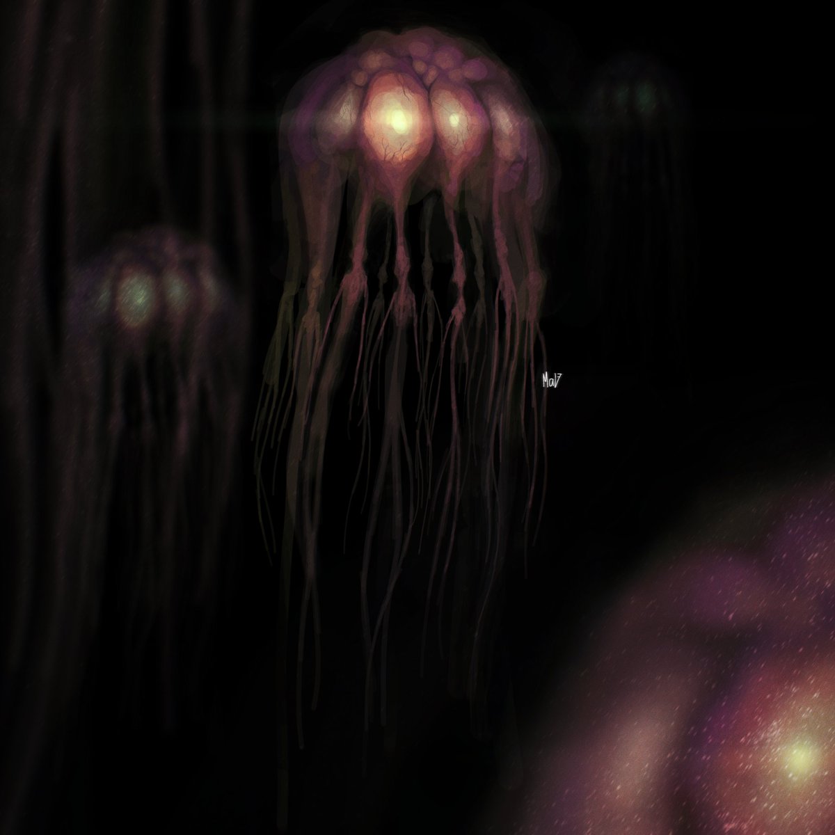 I love drawing void creatures, I don't have to worry about backgrounds or lighting and sht. (I drew this from the top of my head, feel free to tell me what these things remind you off that already exist in a media I'm not familiar with 😉)