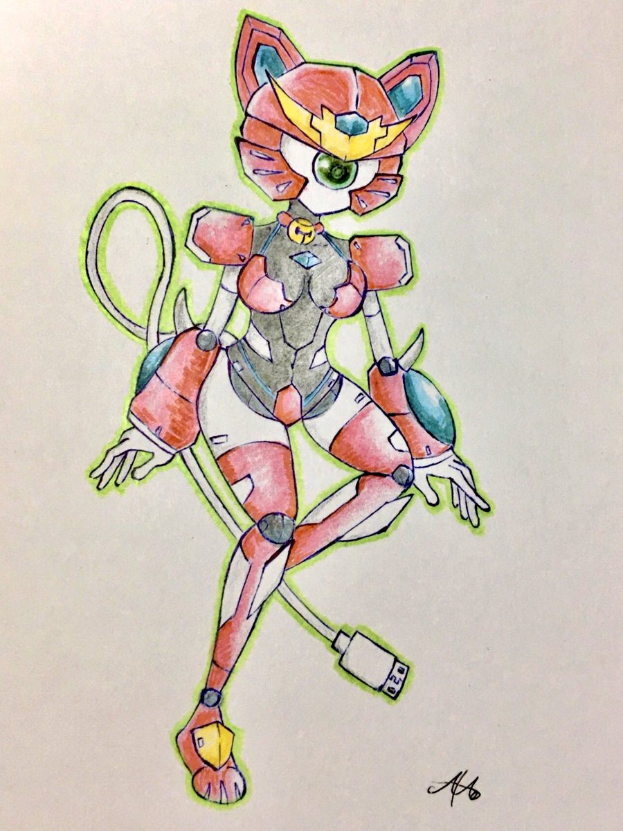 ペッパーキャット描きました 写真だと赤が綺麗に出ない…… #メダロット
