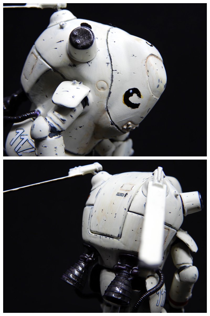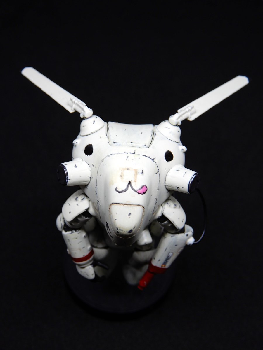 ガチャーネンカウツ2体目完成。 黒鉄色→銀→オフホワイトの 筆塗り3層重ねの後 デザインナイフで引っ掻いて 塗装ハゲを再現してみた。 それ以上に今回は 「絵心0のパイロットが 整備士いない隙に勝手に描いた」 ウサギの顔が個人的ポイント。 てへぺーろ。 #マシーネンクリーガー #ガチャーネン