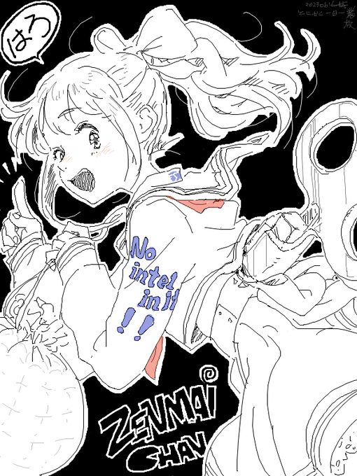 #シンプルドロー #版権 思い切りアナログなゼンマイでおまけに「No in it」なのになんかすごいサイバーだったみなかみさんちのZENMAIさま。 sketch.pixiv.net/items/70586627…
