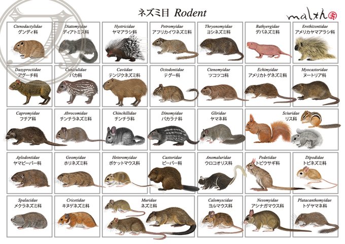 5 30 ネズミ目(げっ歯類)の科 #野生動物 #博物画 #動物図鑑 #動物イラスト #齧歯類 #げっ歯類 #デジタルペイント #プロクリエイト 20/06/26 21:11
