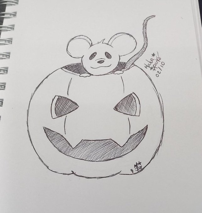 0 2 So... #inktober2022 #day2 : #scurry #drawinchallenge #inktober #ink #inkart #halloween #jackolantern #pumpkin #mouse #drawing #sketches #sketch #artist #art 22/10/03 01:36