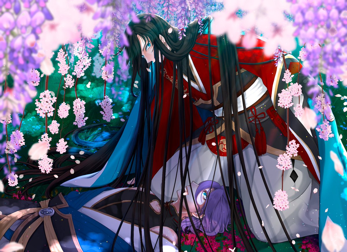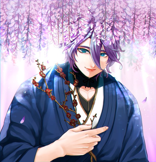 28 80 【藤の花】 花言葉は「歓迎」「恋に酔う」「忠実な」「優しさ」「決して離れない」だそうです!🤗🌸 こちらも梅を持ってるあたりでお察しください☺️✨ 23/04/20 21:00