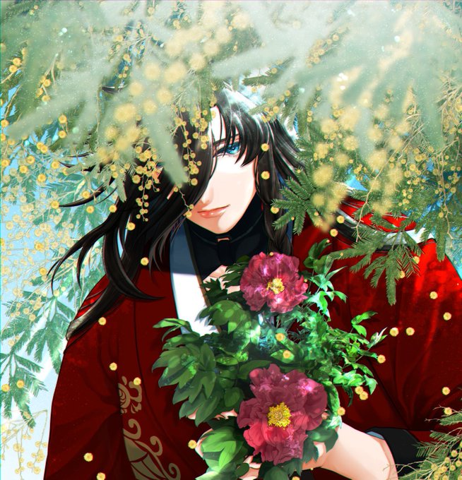 【ミモザ】 花言葉は「感謝」「友情」「密かな愛」「エレガンス」だそうです!🌸 牡丹を持ってるあたりでお察しください🤗✨
