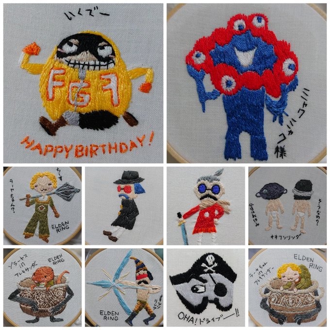 1 12 #今月描いた絵を晒そう 刺繍だけども ELDENRINGにコジャケに猫 22/09/30 00:29