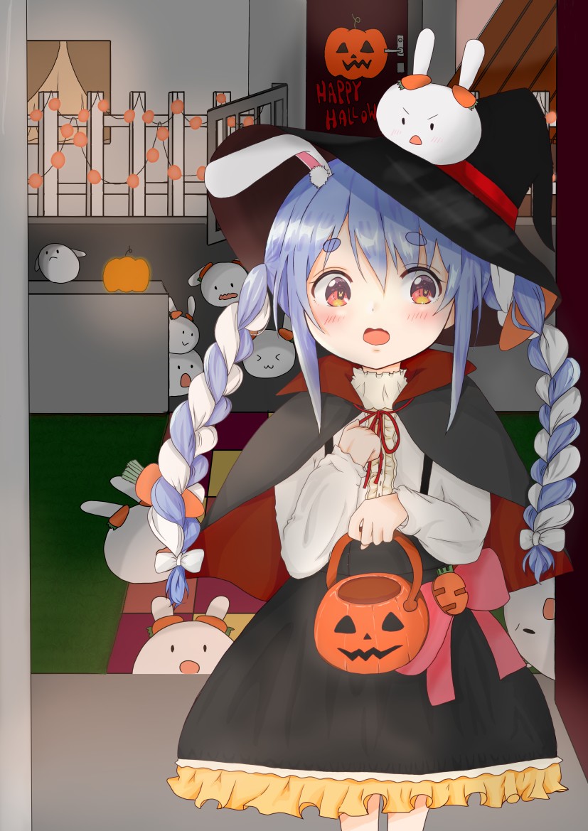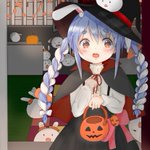 ハロウィンのぺこちゃん🥕人見知り発動するぺこちゃんと見守る野うさぎ達 #ぺこらーと #ホロライブ #兎田ぺこら