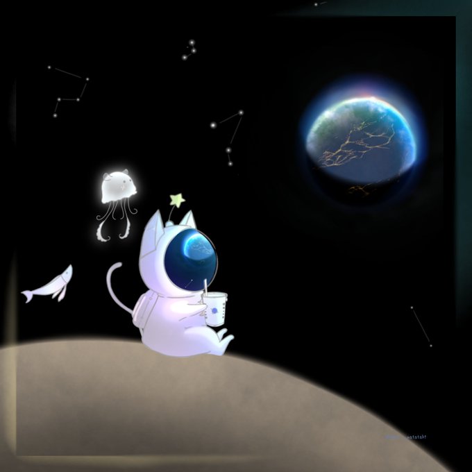 5 22 #イラスト #夏の創作クラスターフォロー祭り 最近は宇宙の猫を描いております✨ 22/07/26 21:46