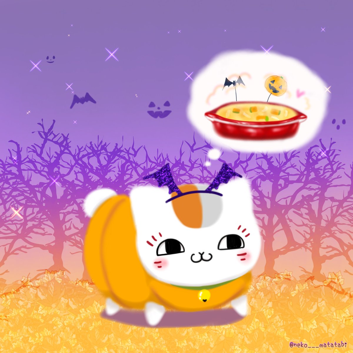 4 18 今日の晩飯はかぼちゃグラタン~❣️ #夏目友人帳 #ハロウィンイラスト #イラスト 22/10/26 21:06